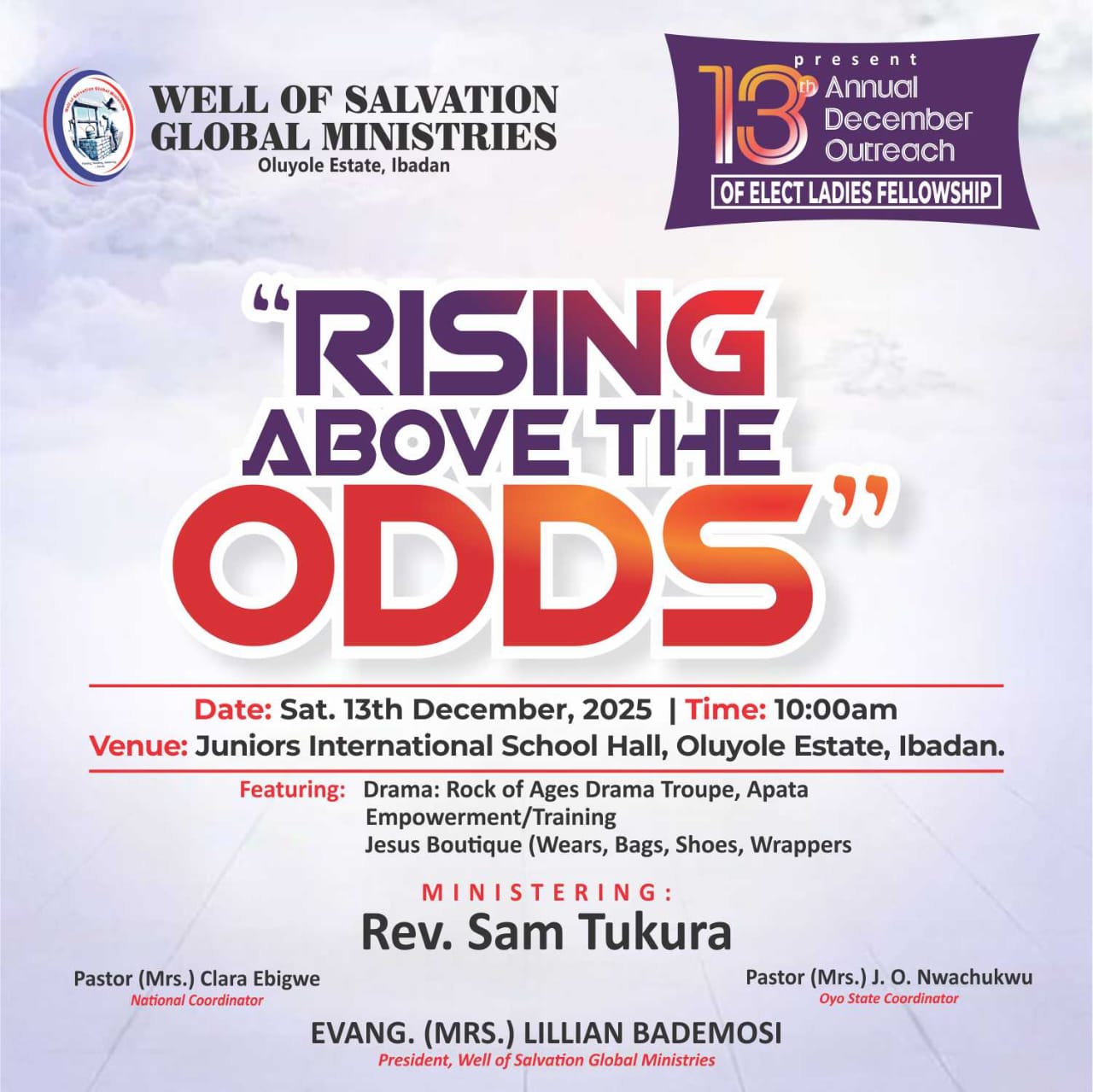 The Well of Salvation Global Ministries is an indigenous non-denominational organisation established to sensitise, mobilize and give support to born again, spirit-filled Christians who have a calling for missionary activities within and outside Nigeria other parts of the world with the total gospel of our Lord and Saviour Jesus Christ.